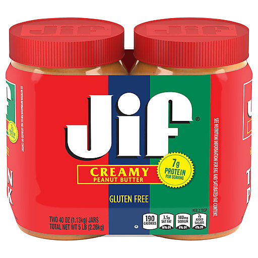 Spread the love! It's easy to do with our Jif Creamy Peanut Butter, full of that mouthwatering fresh roasted peanut taste you know the whole family enjoys. No other peanut butter will do, so it's a no-brainer that you'll enjoy this classic peanut butter taste paired with jelly or create your own show-stopper snack with a quick spread on veggies or fruit. Just one bite of this smooth, creamy peanut butter will remind you of your best childhood memories. From a brand that has been trusted for generations, Jif® Creamy Peanut Butter is That Jif’ing Good™, making it perfect for a variety of recipes from simple sandwiches to delightful baked goods, dolloped on celery, or just on its own in spoonfuls straight from the jar. Plus, this peanut butter is gluten free, contains no artificial preservatives and has 7g protein (7% DV) per serving (See Nutrition Information For Fat And Saturated Fat Content), so you’ll definitely want to keep the goodness going and stock up on this good stuff.